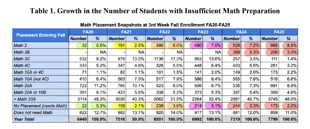 Then things got worse: beginning in 2023, Math 2 instructors started to complain that their students were missing basic math skills from K-8 instruction.