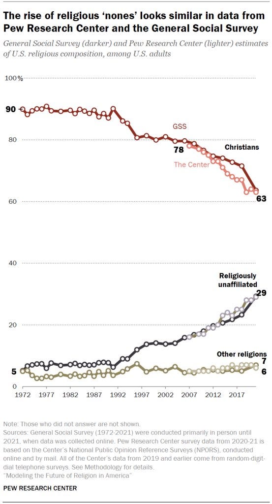 That battle having been conclusively lost, the religious right retreated to a much weaker grievance, which itself has been so widely lampooned that it too mostly serves as a punchline among bien pensants: that there’s a “War on Christmas”, a distributed campaign of erasing public celebration of Christmas in favor of a generic “holiday season.” Usually people grinding this axe will point to examples in commerce and media, whether that’s Starbucks printing a different message on their seasonal merchandise, or the local news affiliate dropping traditional coverage of Christmas celebrations such as tree-lightings. Governments have additional reasons to tread lightly here given the capricious nature of first-amendment litigation, which is why public schools now grant a Winter Break and nativity scenes on government property are rare. There are too many examples to point to individually, and it’s easy for casual observers to convince themselves that public, communal celebrations of Christmas are in steep decline, even if far from extinct. The Christian faith and the Christmas holiday in particular are no longer ubiquitous, near-universally shared cultural assumptions, as they were even a few decades ago.