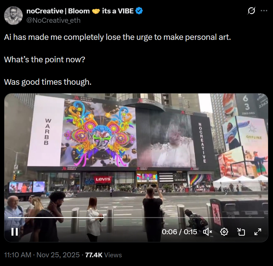 The true test of any artform is this: can the person making the art possibly hope to get pussy as a result of their efforts? Or, to be less crass, can they use their artwork to gain social status and acclaim? If no, then they are not an artist. Prompt authors will not get pussy, therefore they aren’t artists, QED. But worse than that, the hyper-saturation of infospace with spectacular AI-created artwork, even if ultimately shallow and empty, actively suppresses the urge for human artistry. Save me the bromides about true creatives being in it for the love of the game — status-seeking is an irreducible human motivation, and when you remove that incentive it cannot but warp the outcomes in predictable ways.